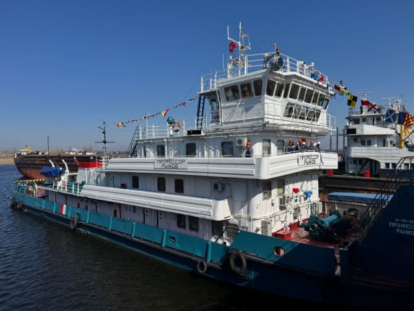 Флагманом навигации стал буксир-толкач «Профессор Рыжов» (капитан – Юрий Агуреев). Теплоход, украшенный флагами расцвечивания, с поднятым на грот-мачте вымпелом Волжского пароходства вышел из ворот шлюза в 9:00 и отправился на погрузку в порт Бузан.